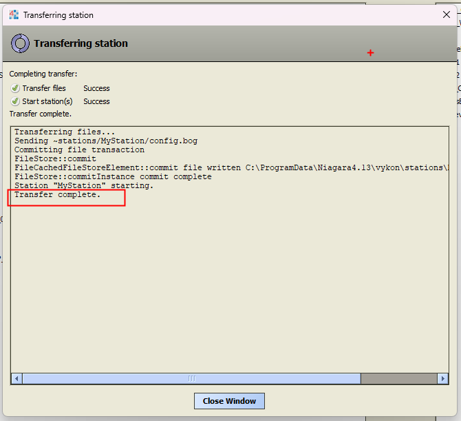You can select Close Window. This will automatically navigate you to the platforms Application Director. Here you will see a list of all stations that reside in the platform. If this is your first time then you should only have one station MyStation.