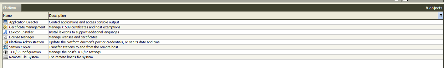 This will open a platform connection dialogue. In the Host field you will want to enter localhost, your computers hostname or IP address. Because we are running this locally on our PC localhost should work fine. The default connection type Platform TLS Connection and port 5011 should also be fine for this guide, unless you have changed it.