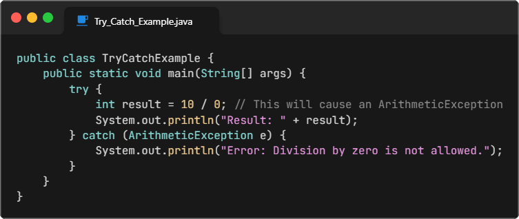 Here is an example of a try/catch block: